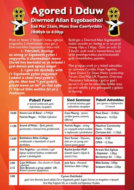 Bydd y flwyddyn – sy’n ddwy flynedd mewn gwirionedd – yn cael ei datblygu o amgylch digwyddiad penodol mawr a gynhelir ar Faes Sioe Sir Gaerfyrddin ar 23 Mai, dydd Sadwrn y Pentecost 2026. Bydd y Sul canlynol yn gyfle i eglwysi ddathlu yn eu hardaloedd eu hunain.